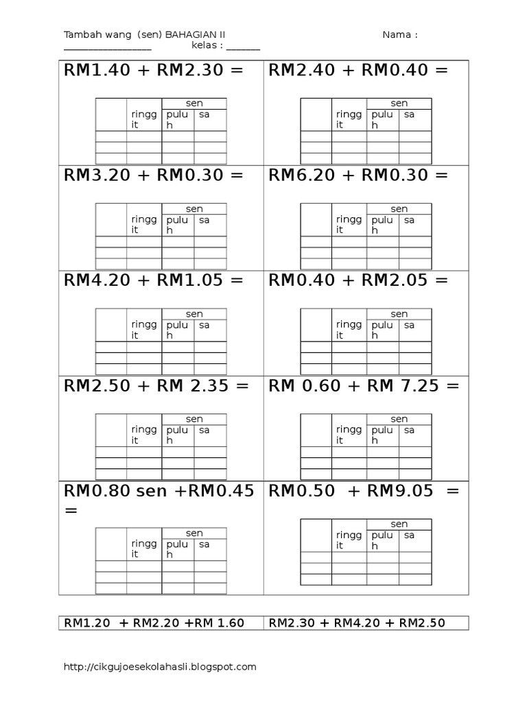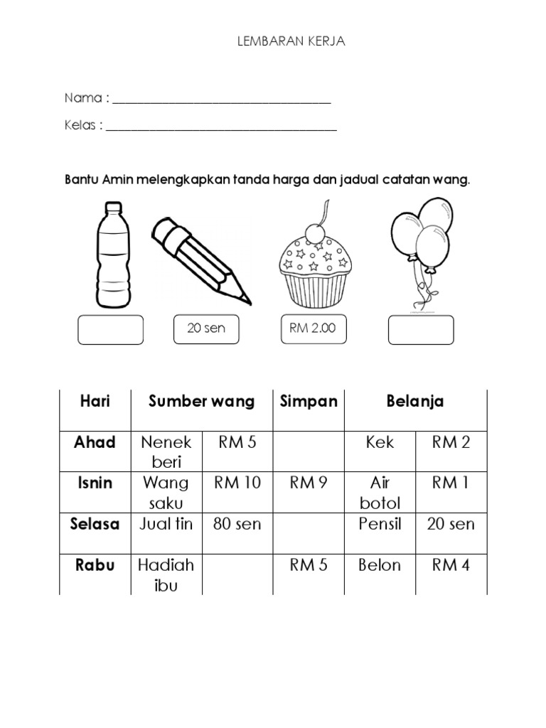 Lembaran Kerja Wang Tahun 1 Sinceredsx